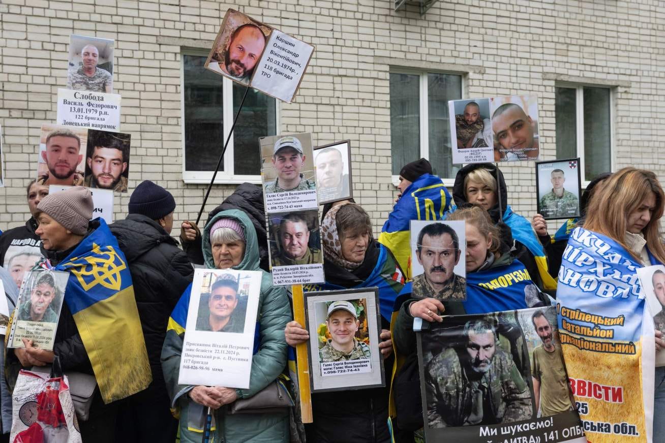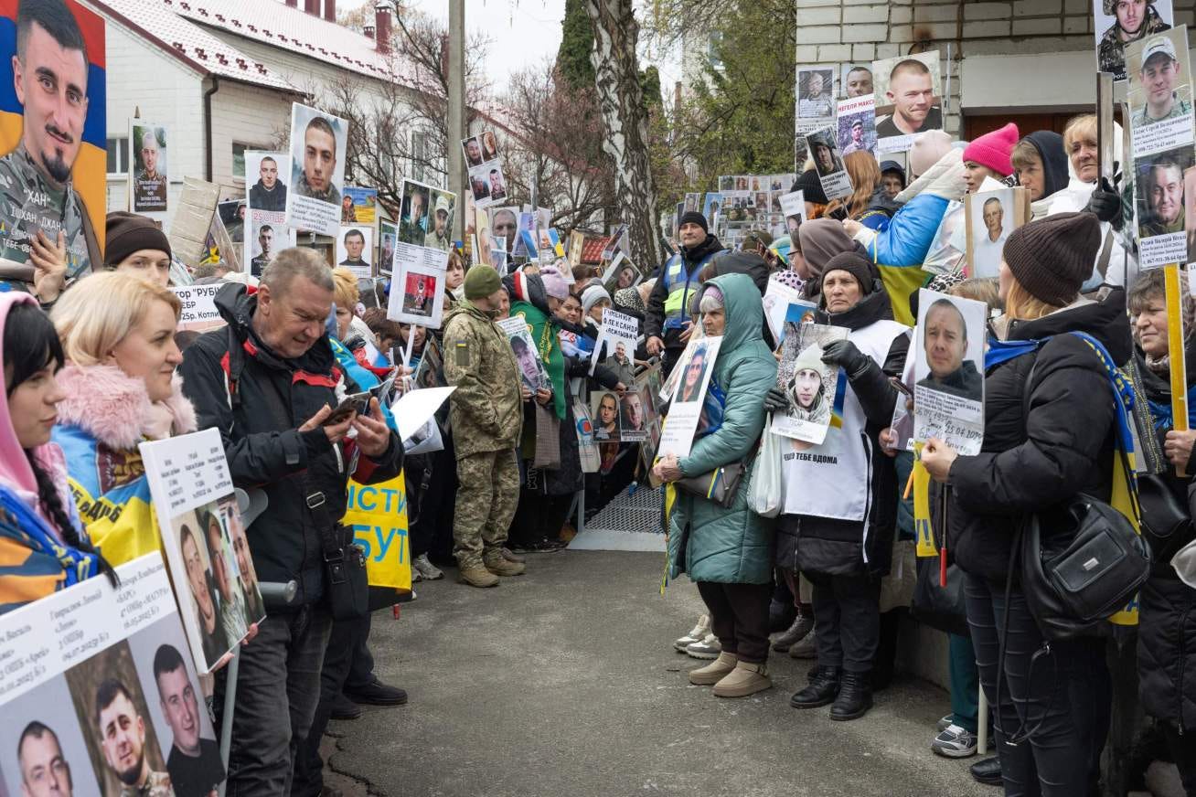 As the day wore into the afternoon, the crowd began to dwindle as those unable to gather new information started to depart. With the fighting dragging on and the Russian government showing little interest in ending its war of conquest, the number of missing and captured will continue to rise, leaving families across Ukraine with little choice but to hope and wait.