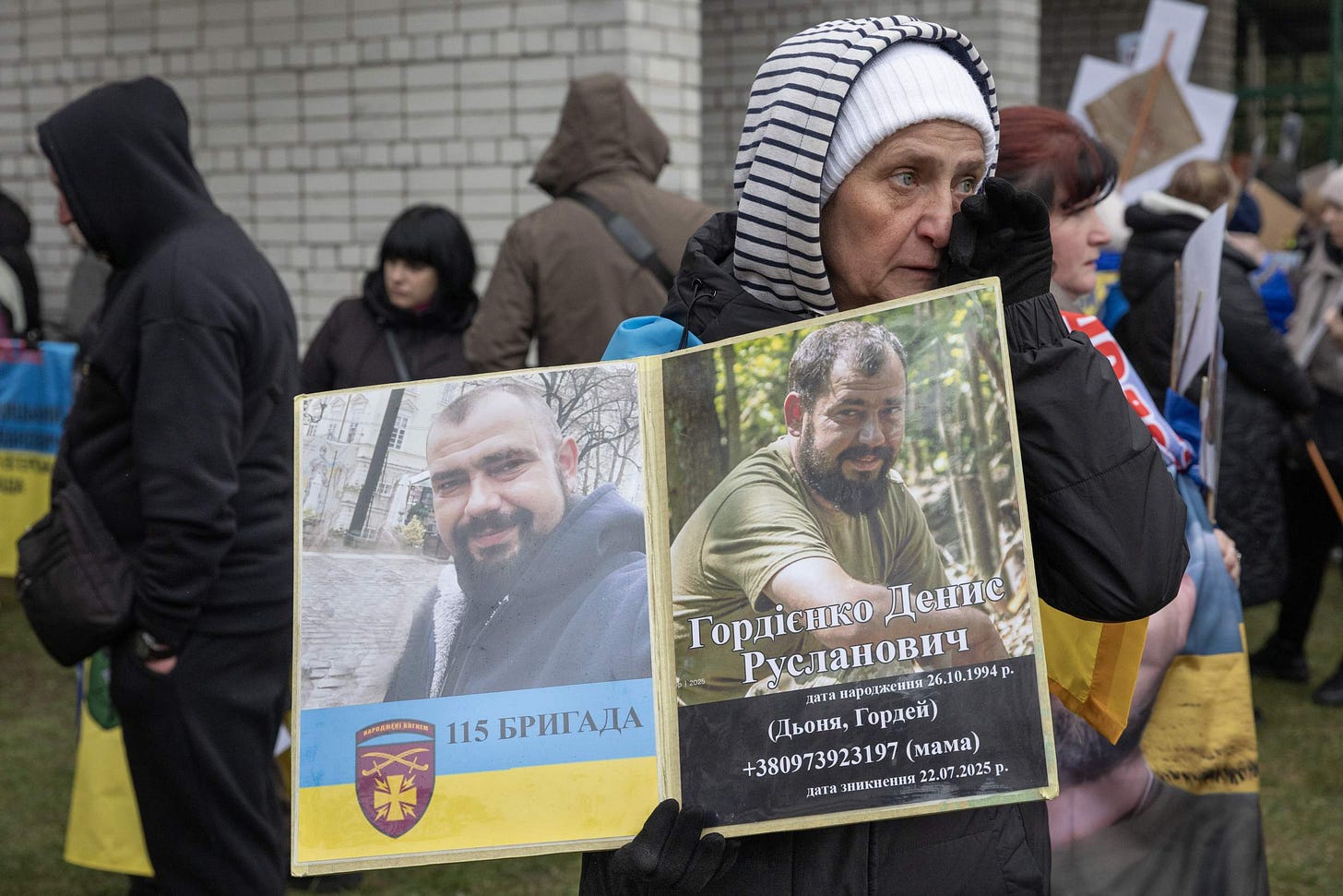 On July 22, 2025, her 31-year-old son Denys went missing during a battle outside Izium. He had volunteered for the army on February 27, 2022, three days after the invasion began.
